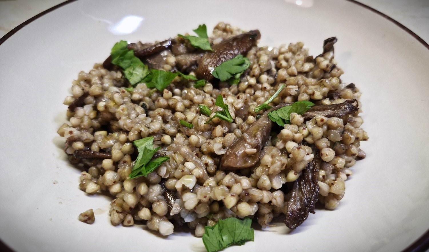 Εδώ σας ετοίμασα μια ζεστή, γήινη και θρεπτική συνταγή για φαγόπυρο με μανιτάρια πλευρώτους και αρωματικό ζωμό που αξιοποιεί τον φυσικό του χαρακτήρα και τον «δένει» αρμονικά με τα μανιτάρια. Ο ζωμός —είτε κοτόπουλου είτε λαχανικών— δίνει βάθος χωρίς να βαραίνει το πιάτο, ενώ τα λαχανικά μπορούν να προσαρμοστούν ανάλογα με το τι υπάρχει διαθέσιμο.