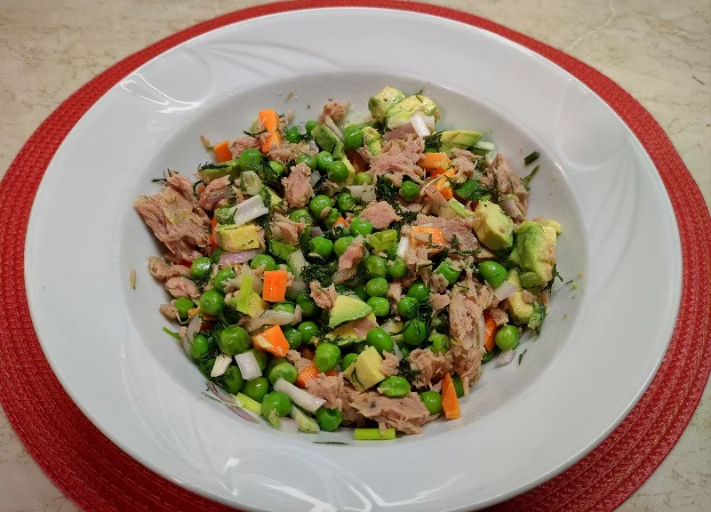 Μία πολύ εύκολη και γρήγορη συνταγή που συνδυάζει τη γλύκα του αρακά με τη βουτυράτη γεύση του αβοκάντο και την νοστιμιά του τόνου.