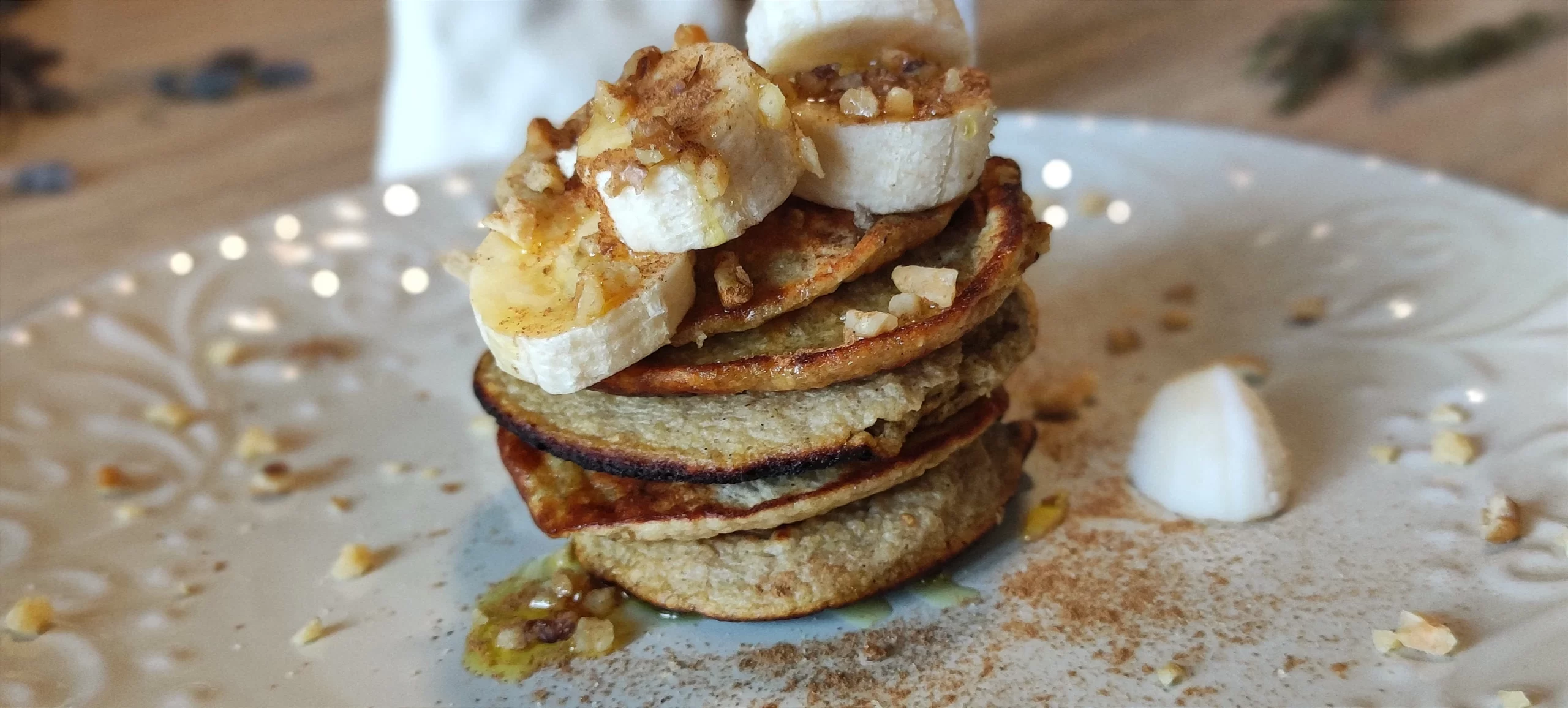 Επειδή ξέρω πόσο πολύ σας αρέσουν οι συνταγές με μπανάνα, σας έφτιαξα άλλη μια συνταγή για pancakes, αυτή τη φορά με βρώμη, μπανάνα και καρύδια.
